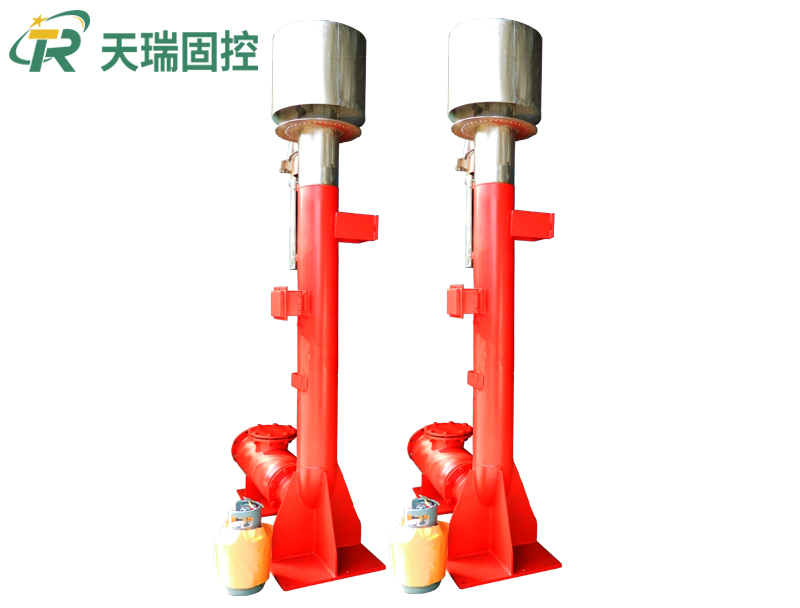 电子点火装置由点火火炬、控制箱和便携式点火控制箱组合而成,两箱体由50米5X1的铠装电缆连接,其中控制箱固定使用。当点火时,将连接电缆分别接入两箱体。便携箱应在安全环境中使用,起到了控制箱点火的作用。